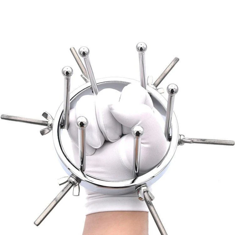 Made in house by our Steel craft expert, it features 6 bars that are adjusted to the desired width using thumbscrews. When central, these bars form a bulb tip for easy insertion. Constructed from fine quality stainless steel, this amazing anal hole spreader is body safe, but also has a delectably weighty and cold feel as it stretches the sphincter.